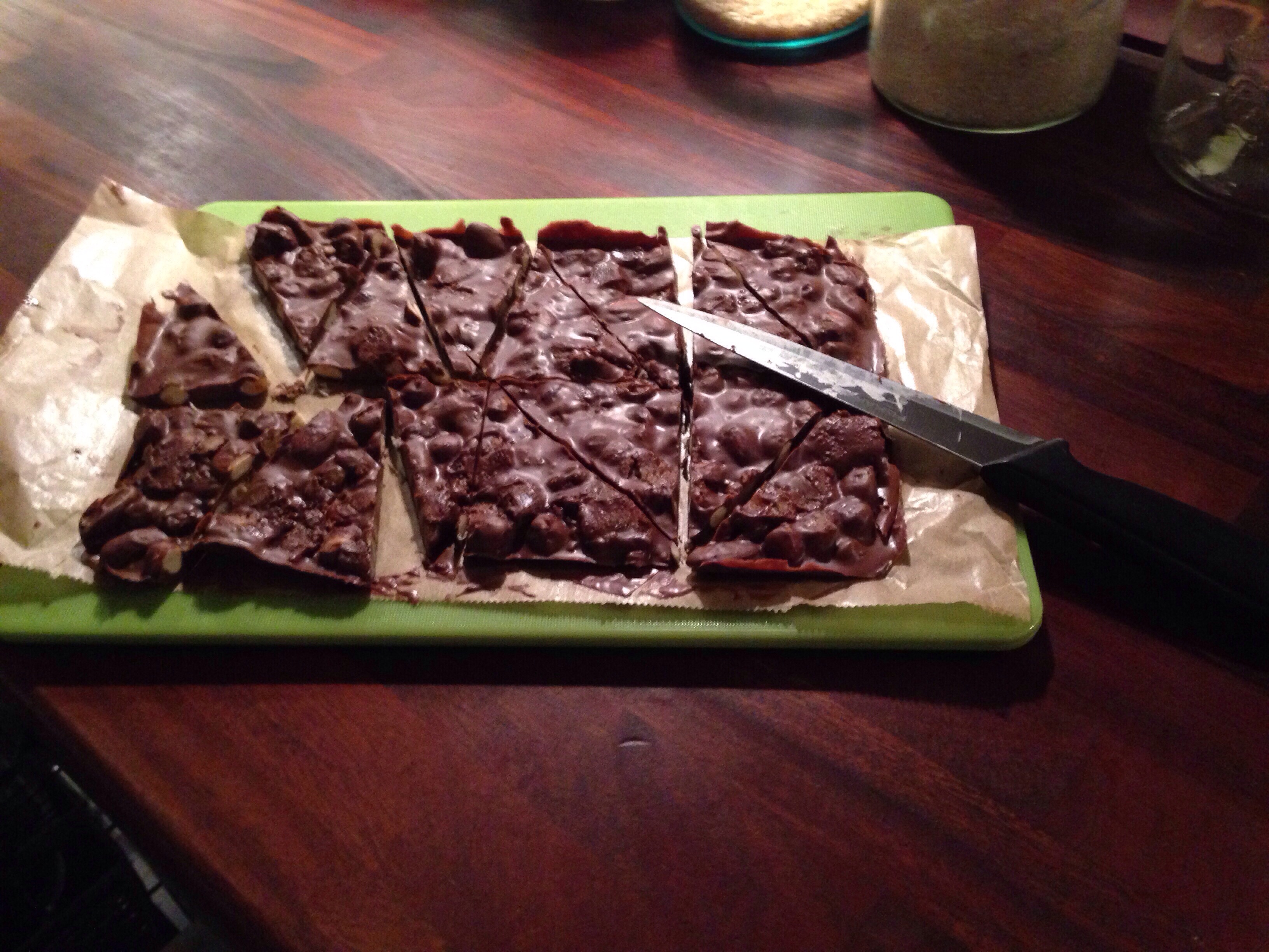 100 g nougat, som røres i den smeltede chokolade