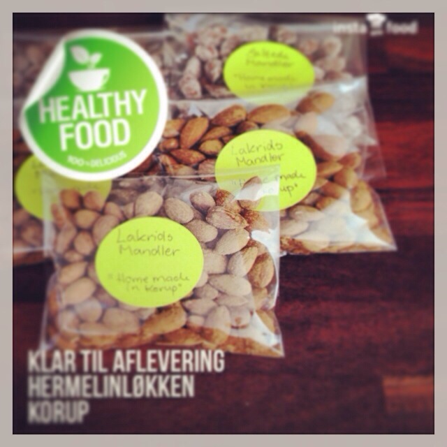 Så er de lækre mandler klar som snack , i salat eller en nem værtindegave.